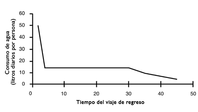 a 20 litros diarios por persona (sostenible por unos pocos meses)
