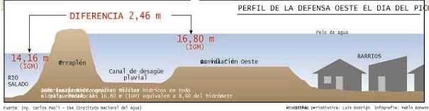 Figura 2. 3 Perfil de la Defensa y el río el día del pico de creciente (C. Parodi, Infografía El Litoral) |