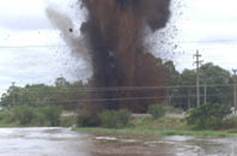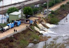 Figura 2. 4 Irrupcion del agua por la brecha y voladuras en la barrera de contención.(El Litoral)
