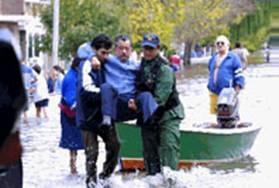 En realidad, y considerando que se estima un número de afectados del orden de los 120.000, lo que reflejan los datos oficiales es la afluencia de gran cantidad de auto evacuados a centros “oficiales”, pero la evacuación propiamente dicha ocurrió entre los días 28 de abril y 1 de mayo. Por una parte mucha gente se retiró de sus casas frente al avance inevitable del agua pero, sobre todo en los últimos barrios inundados, donde hasta se había asegurado que no serían inundados, la situación fue distinta. Así, miles de personas tuvieron que ser socorridas con el agua ya ingresada (por ejemplo rescatadas desde los techos o zonas altas) por el estado de shock e incredulidad que los hizo quedarse en sus casas frente a la llegada del agua. En concreto, el éxito obtenido en el alto número de rescates de personas en estado de conmoción, animales y bienes, efectuados con embarcaciones, en la oscuridad plena, bajo la lluvia, en barrios de viviendas y calles irregulares, con obstáculos sumergidos como autos, cables de energía, terraplenes, etc., merece un análisis particular. Dejando de lado la actuación de organizaciones que estaban entrenadas para el rescate (Bomberos, COBEM, Prefectura), pero que no contaban con ningún plan y sus medios eran limitados, jamás se hubieran logrado los resultados sin la participación independiente de la población. Y una vez más la cultura del río (en este caso en forma positiva) jugó un papel importante: cientos de embarcaciones particulares de la zona (lanchas a motor, piraguas, canoas) con “patrones” anónimos, experimentados para desenvolverse en el río aún en condiciones adversas (una costumbre pescadora), en barrios desconocidos, participaron en forma “anárquica” y solidaria del rescate, en lugares donde otras embarcaciones como las de rescate anfibio no podían acceder.