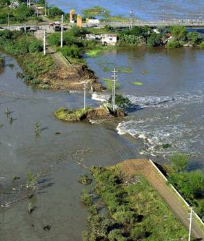 El puente sobre la autopista (por debajo del cual pasan entre otras cosas un gasoducto) peligra en su estabilidad por un socavón sobre uno de sus pilares, y hace necesario cortar el tránsito, con lo cual el único ingreso a la ciudad por el sur es el puente carretero Santo Tomé-Santa Fe, que jugaría un papel muy importante en el ingreso de la ayuda humanitaria.