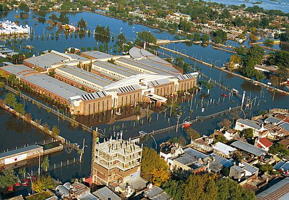 La magnitud y velocidad del agua que llegaba a los dos nosocomios mas afectados, distantes unas pocas cuadras uno de otro, no pudo ser contenida pese a acción de Servicios Públicos y la enorme solidaridad popular que rodeaba al hospital (Niños) que intentó evitar el desastre utilizando los modelos de protección (bolsas de arena) propios de su experiencia anterior de “inundados del Río Paraná”, útiles para niveles de menos de 1 metro de altura de agua, insuficientes en esta oportunidad, distrayendo, posiblemente, de las tareas de salvataje de información, archivos del Hospital etc.