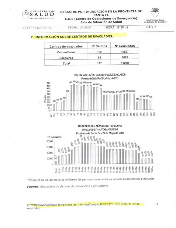 a) Información general (altura de los ríos, pronóstico del tiempo, sobre centros de evacuados y autoevacuados.